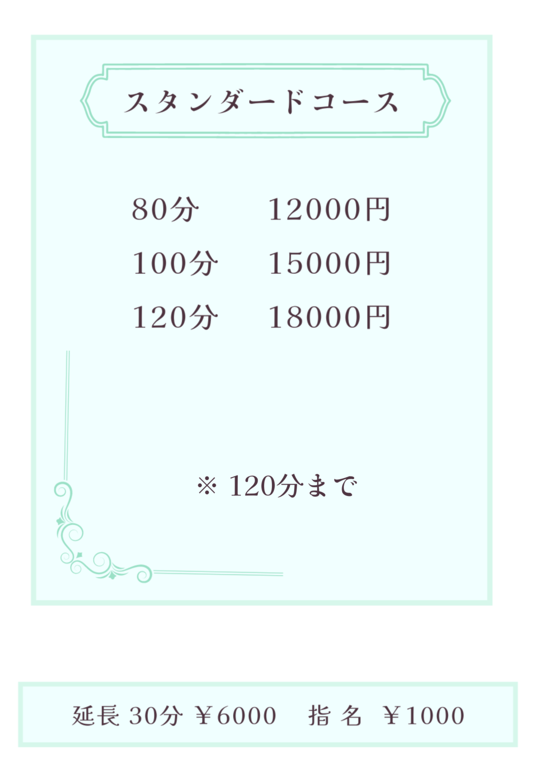 ・施術後体調を崩された場合の返金や責任などは当店では負いかねますので予めご了承下さい。・当店では貴重品の紛失及び盗難について一切の責任を負いかねます。ご自身での管理をお願い致します。・性的サービスの要求やセクハラ行為・セラピストに対するボディータッチ、暴言、暴力、その他セラピストが嫌がる行為・セラピストの電話番号、メールアドレス等を聞き出す行為・盗聴、盗撮行為・泥酔状態の方・暴力団関係者、またはそれに準ずる方・スカウト、引き抜き行為・店舗前での待ち伏せ行為・その他、当店にふさわしくないと判断された方